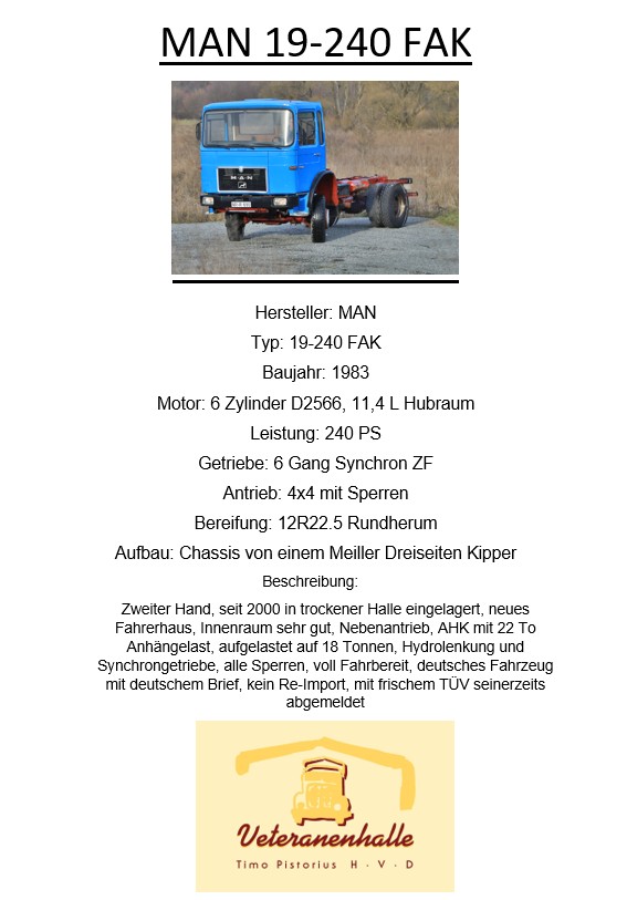 | Aufbau | Allrad Chassis mit Nebenantrieb ex Meiller Kipper |